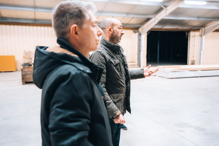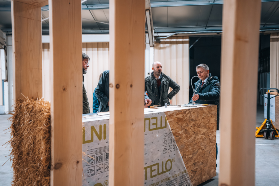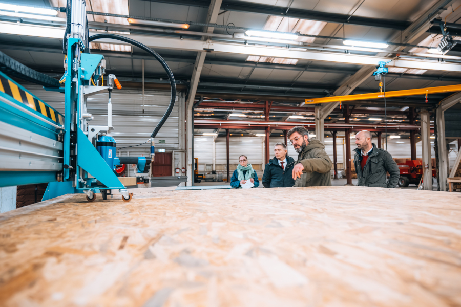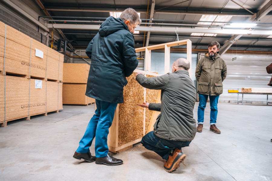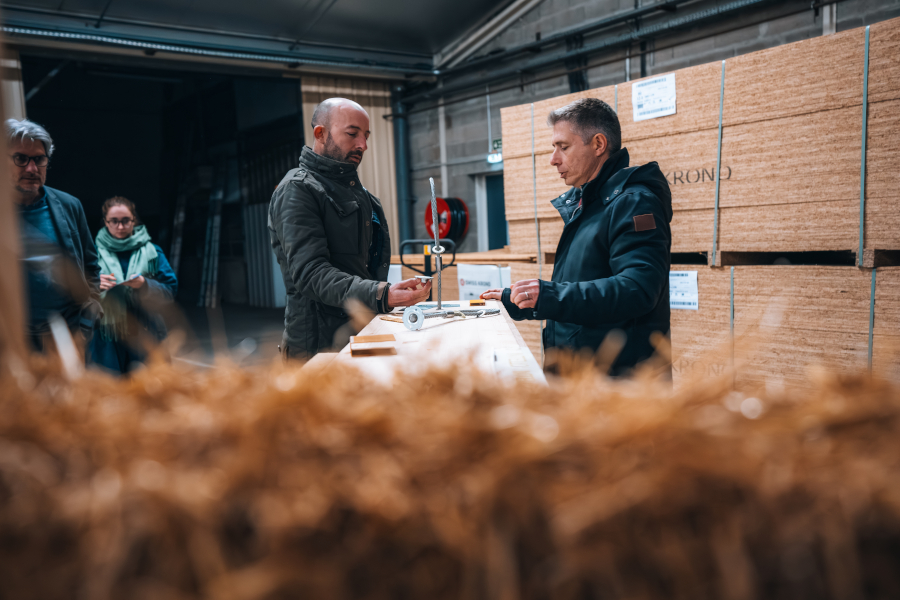 Nos invités sont venus motivés par un vif intérêt pour découvrir de près la proposition innovante d’Ob2 dans le domaine de la construction durable. Vianney Deffontaines, architecte et président de l’entreprise, a assuré la présentation officielle tandis que Gautier Deffontaines, responsable de production, s’est chargé de la démonstration de la chaîne de production.