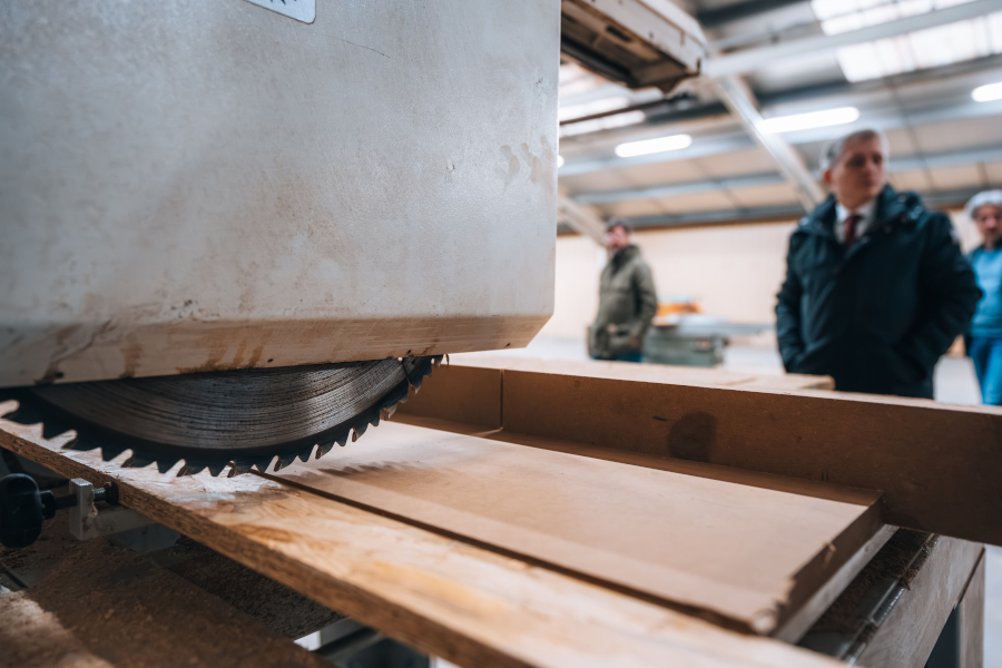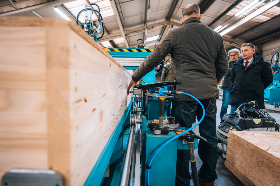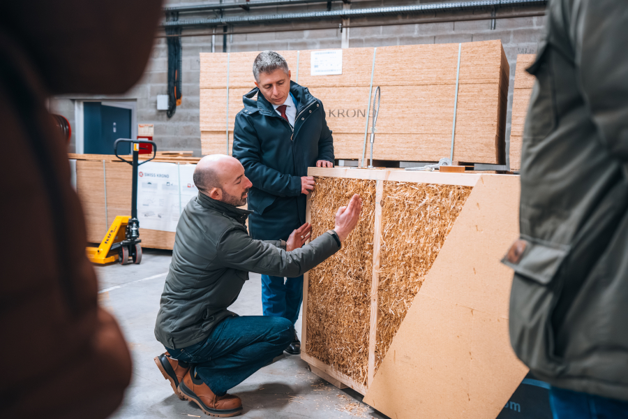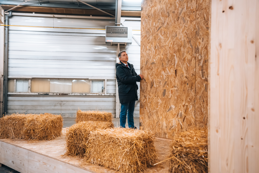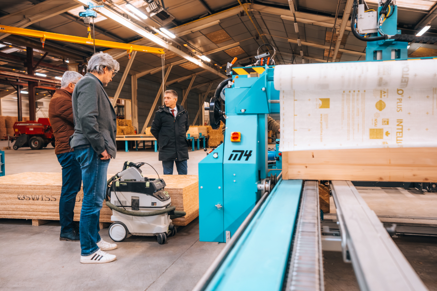 Ainsi, nos hôtes n’ont pas manqué l’occasion de faire une brève démonstration du processus de fabrication des murs et panneaux de A à Z, mettant en avant la maîtrise de l’utilisation de matériaux biosourcés tels que la paille et la fibre de bois comme isolants. Les visiteurs ont pu observer les machines de pointe utilisées dans l’atelier d’Ob2, un aspect clé qui positionne l’entreprise comme un nouvel acteur dans la région, capable de répondre aux demandes des clients particuliers ainsi qu’à de grands projets du secteur public.